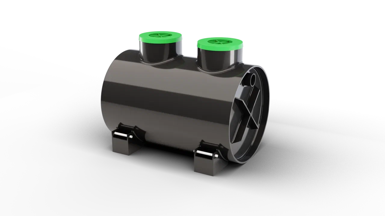 Септик также оснащен системой аэрации и эрлифтов с компрессором, которая позволяет повысить степень очистки септика, что позволит еще реже обслуживать систему почвенной доочистки (дренажную траншею или колодец). Компрессор входит в комплект поставки.
